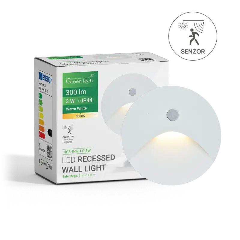 LED ugradna zidna svjetiljka sa senzorom Green Tech 3W, 3000K IP44, crna