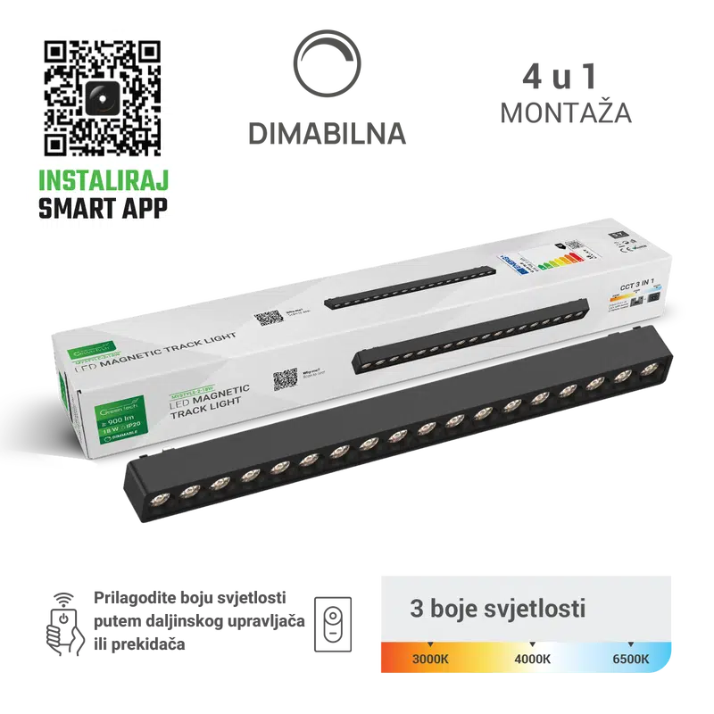 LED MAGNETNA SVJETILJKA GREEN TECH 6W 3000K IP20 OSRAM LED CRNA BOJA