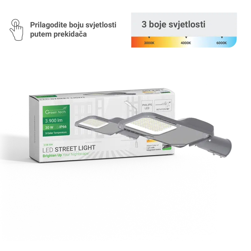 GREEN TECH LED ulična svjet. Green Tech 30W, 3900lm, Philips LED, 3 CCT 3000K-4000K-6000K - S10B-30W