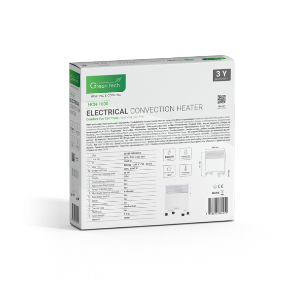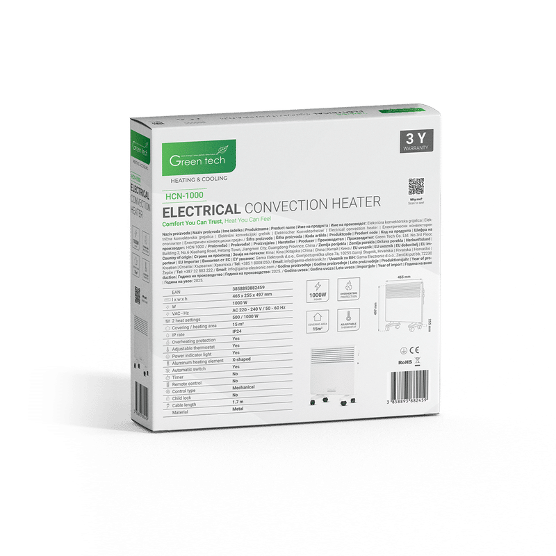 KONVEKTORSKA GRIJALICA GREEN TECH 1000W ELEKTRIČNA