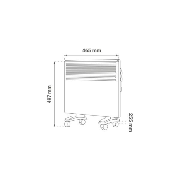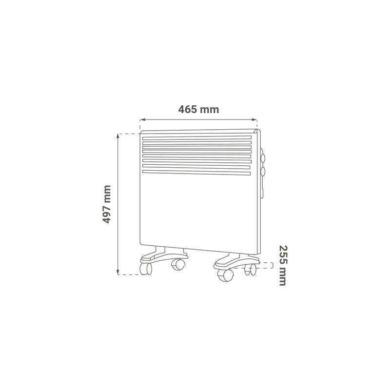 Dimenzije tijela konvektorske grijalice: 465 x 418 x 93 mm