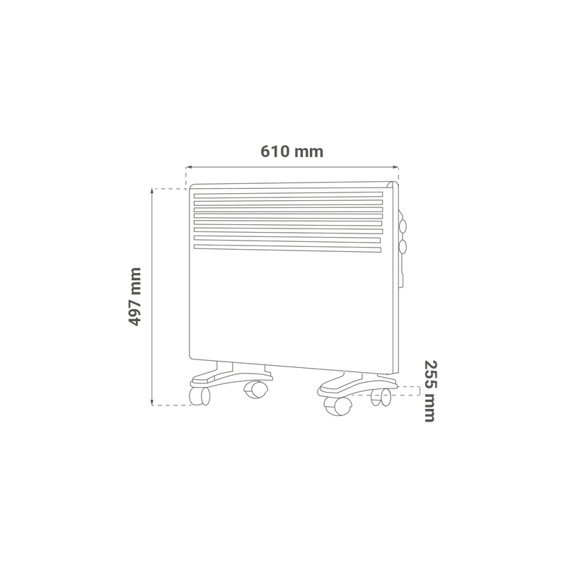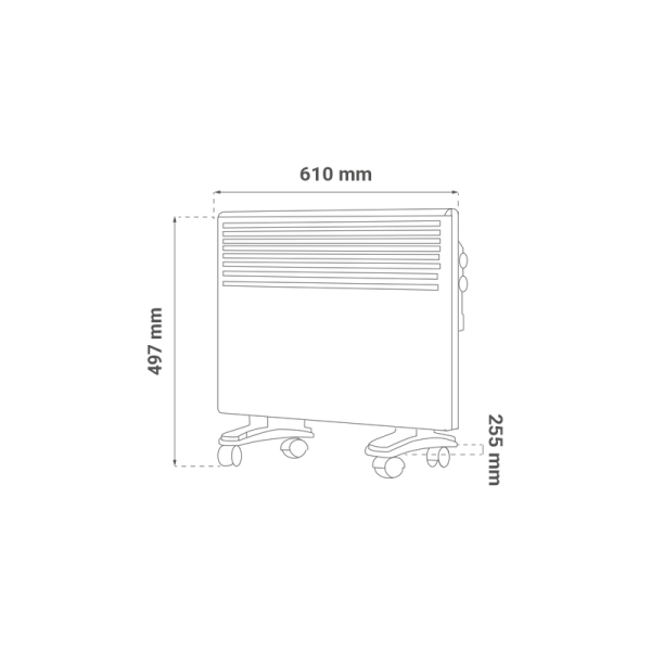Dimenzije tijela konvektorske grijalice: 610 x 418 x 93 mm