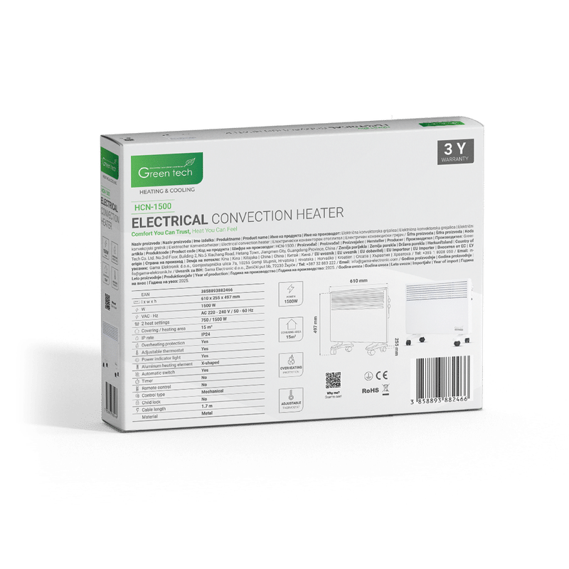 KONVEKTORSKA GRIJALICA GREEN TECH 1500W ELEKTRIČNA