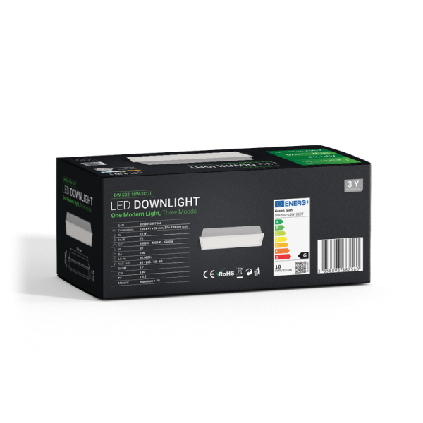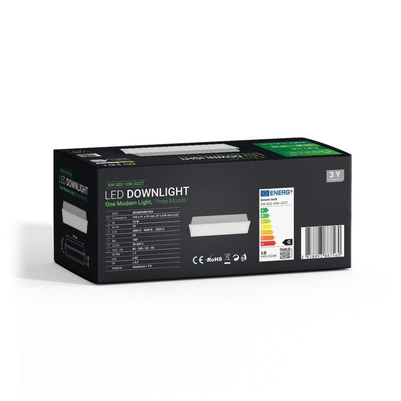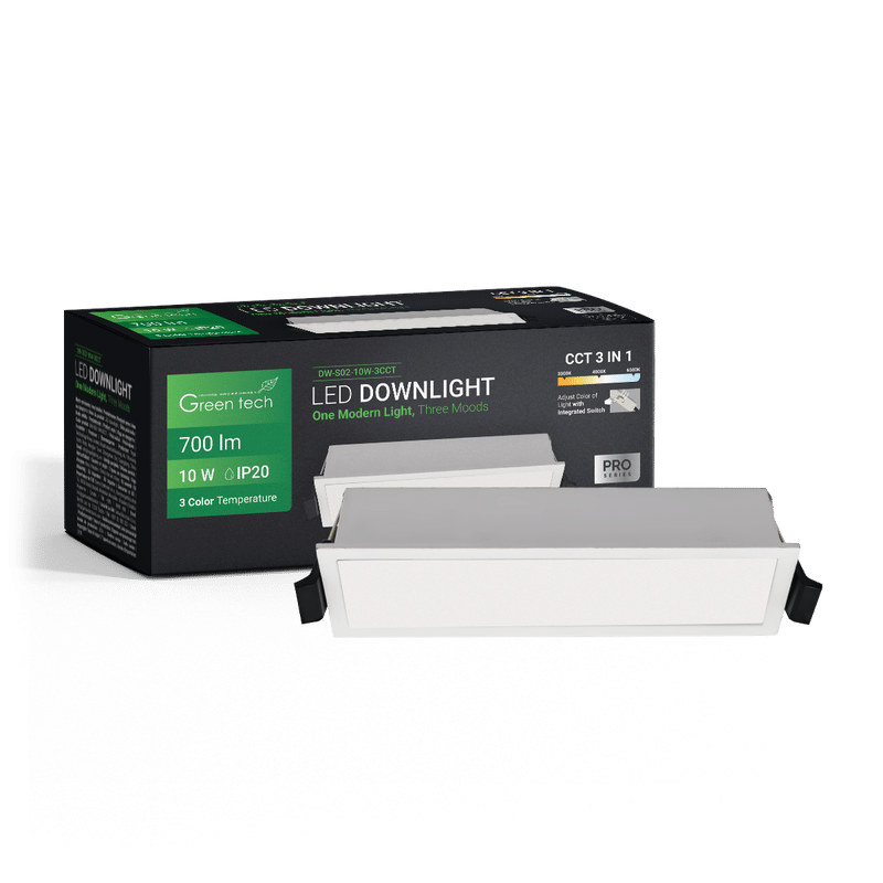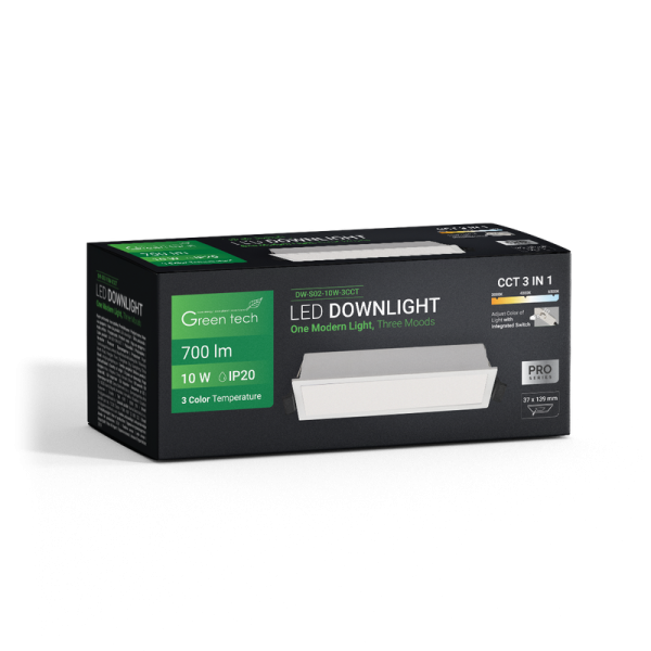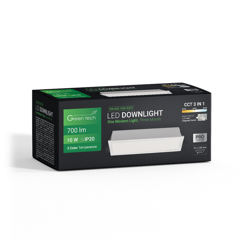 GREEN TECH LED downlight Green Tech 10W, 3 CCT, pravokutni – DW-S02-10W-3CCT