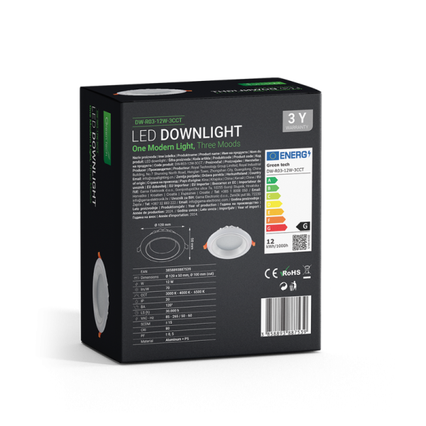 GREEN TECH LED downlight Green Tech 12W, 3 CCT, okrugli – DW-R03-12W-3CCT