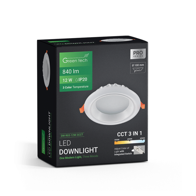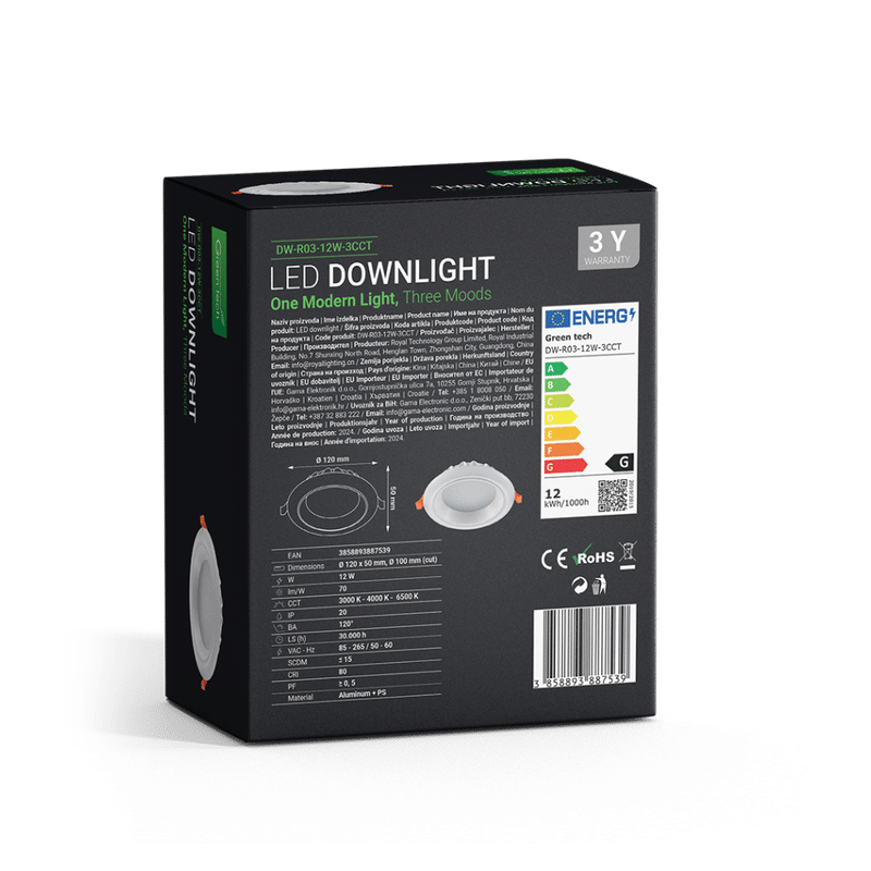 GREEN TECH LED downlight Green Tech 12W, 3 CCT, okrugli – DW-R03-12W-3CCT