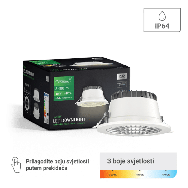 GREEN TECH LED downlight Green Tech 40W, 3CCT, promjer 240-255 mm – DWE-40W