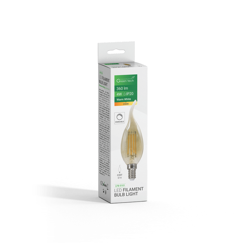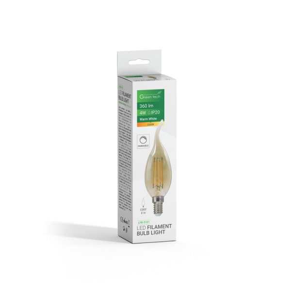 GREEN TECH LED filament žarulja Green Tech 4W, 2300K, E14, AC220V, C35T, amber, dimabilna – LFB-5101