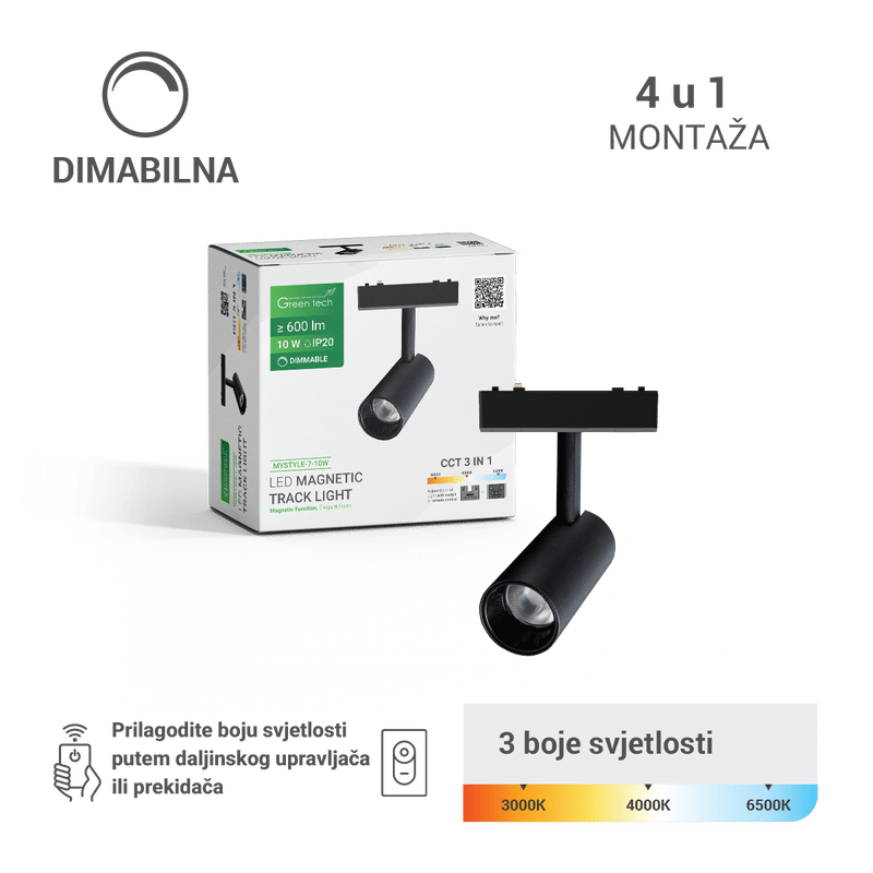LED magnetna svjetiljka Green Tech “MYSTYLE” 10W, 3CCT, Dim.