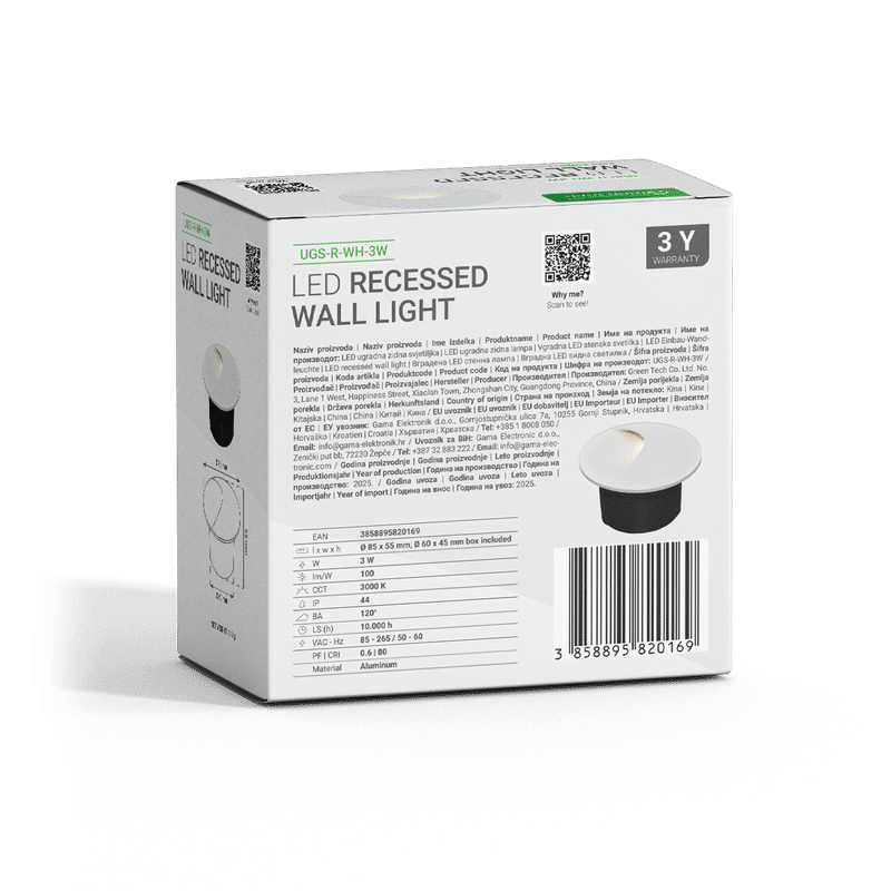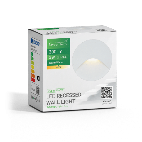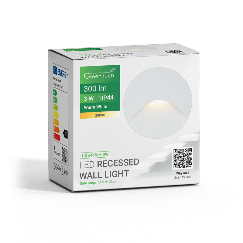 LED ugradna zidna svjetiljka Green Tech 3W, 3000K IP44, bijela