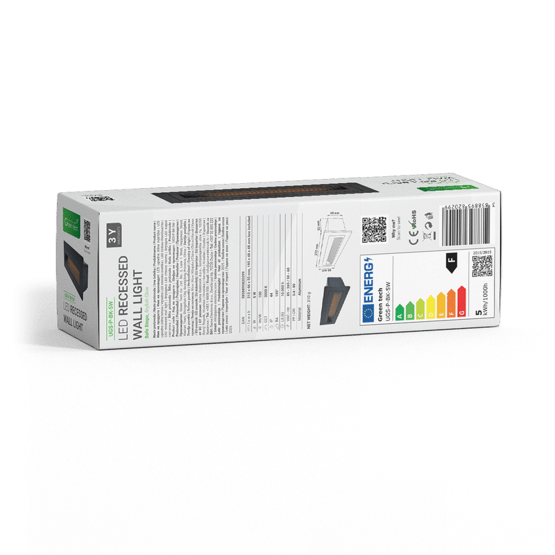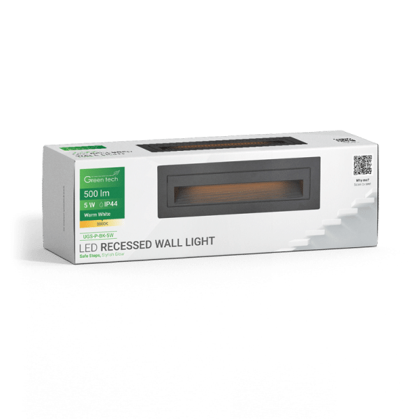 LED ugradna zidna svjetiljka Green Tech 5W, 3000K IP44, crna