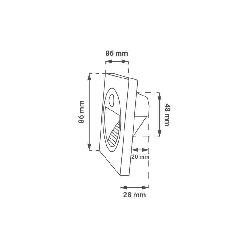 Dimenzije ugradnog dijela: 54 x 48 x 20 mm