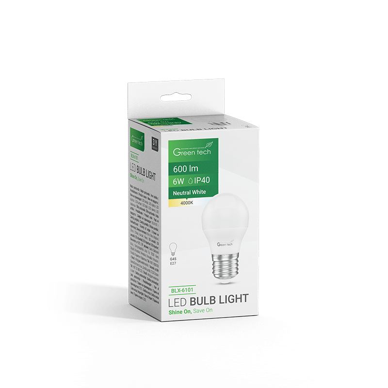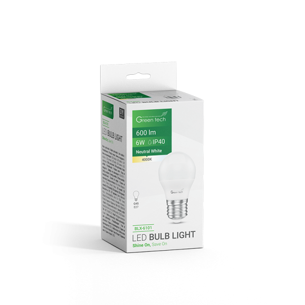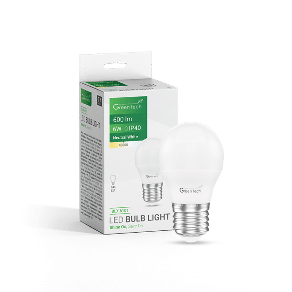 GREEN TECH LED žarulja Green Tech 6W, 4000K, E27, G45, Flux: 600 lm, IP40, Epistar chip – BLX-6101