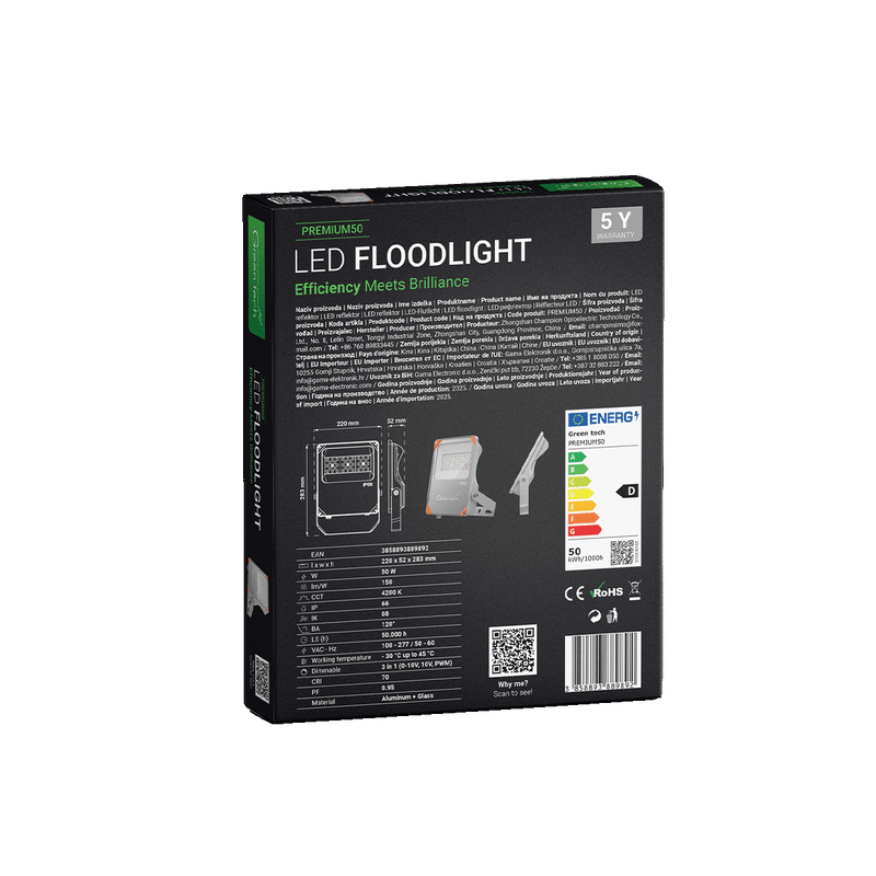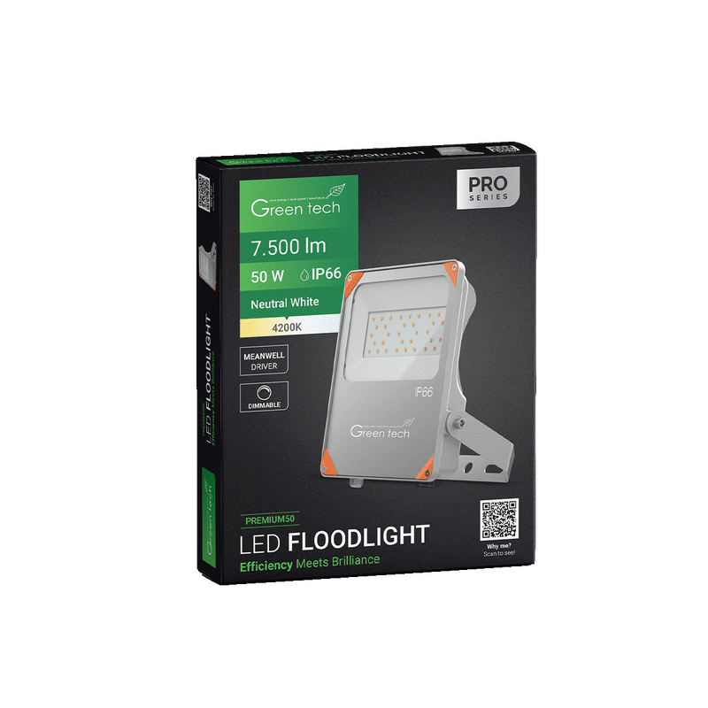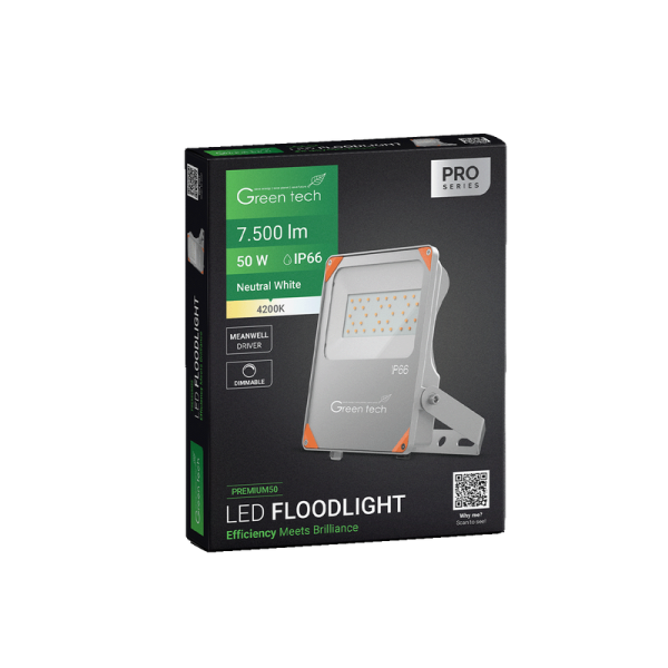 GREEN TECH Premium LED reflektor Green Tech, 50W, 150 lm/W, 4200K, IP66, Meanwell XLG – PREMIUM50