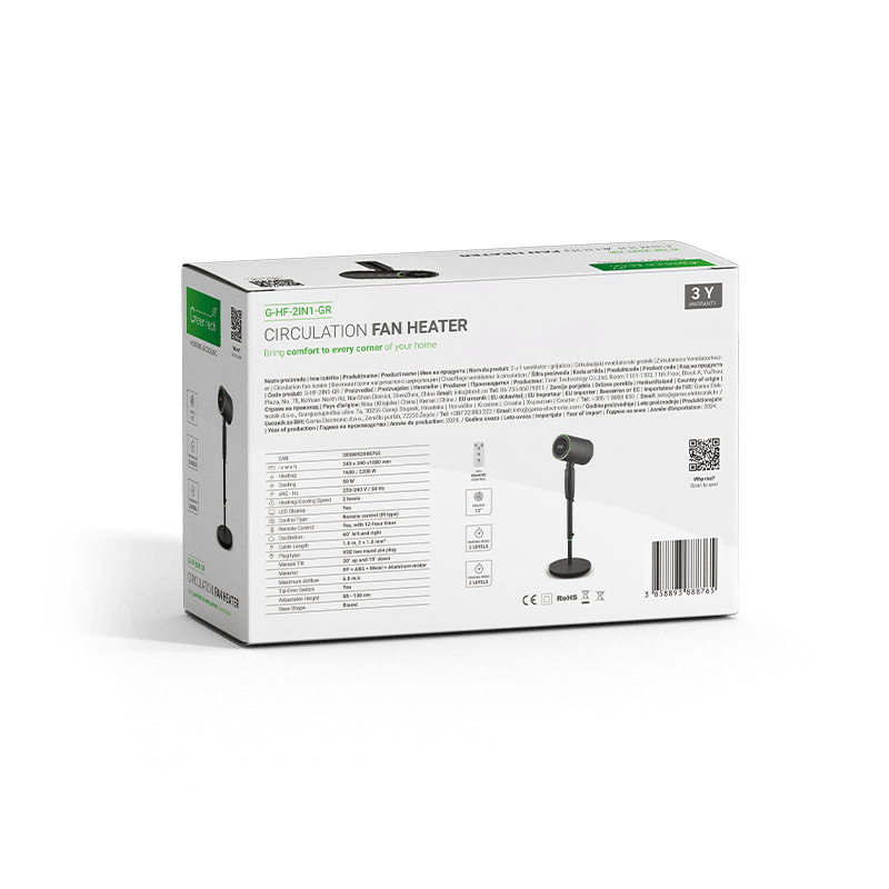 GREEN TECH Ventilator i grijalica Green Tech 50W (hlađenje) / 2200W (grijanje) – G-HF-2IN1-GR