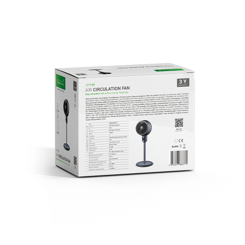 GREEN TECH Ventilator s postoljem Green Tech 35W, 9″, timer – G-F9-BR