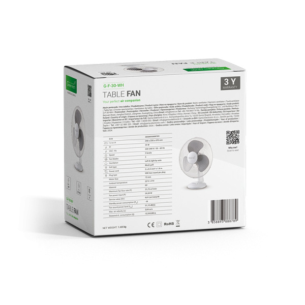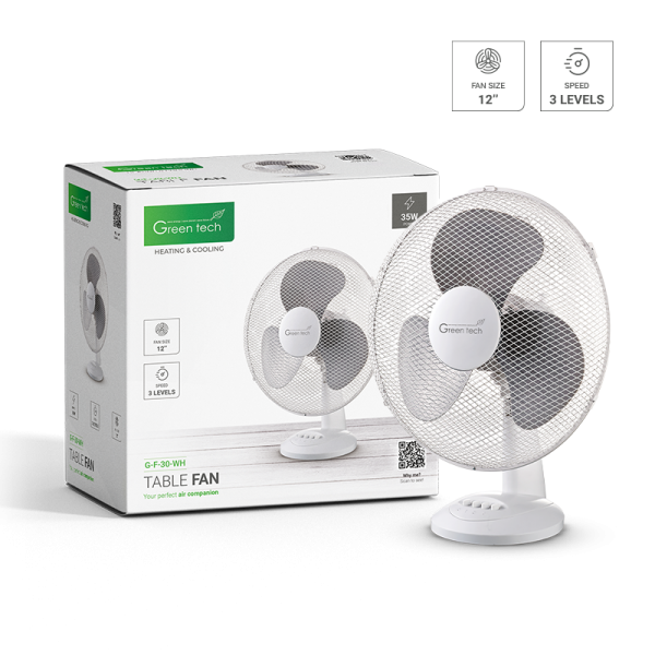 GREEN TECH Ventilator stolni Green Tech 35W, 12“, bijela boja – G-F-30-WH