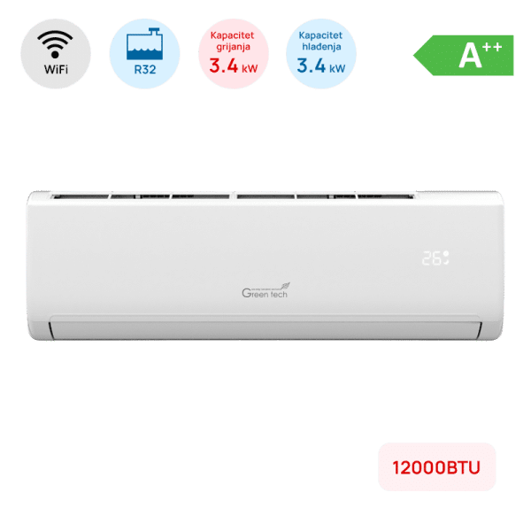 Klima Green Tech 12000BTU, 3.4kW, A++, R32, -22°C ~ 53°C, s grijačem, WiFi, bij.