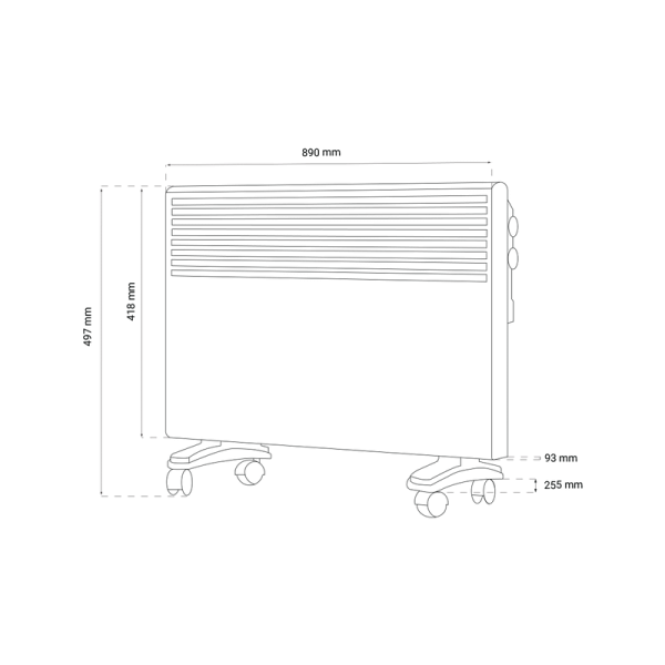 Dimenzije tijela konvektorske grijalice: 890 x 418 x 93 mm