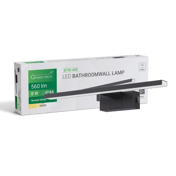 LED kupaonska zidna lampa, Green Tech, crna, 560 lm, 8W, 4000 K, IP44, 40 cm – BTM-400