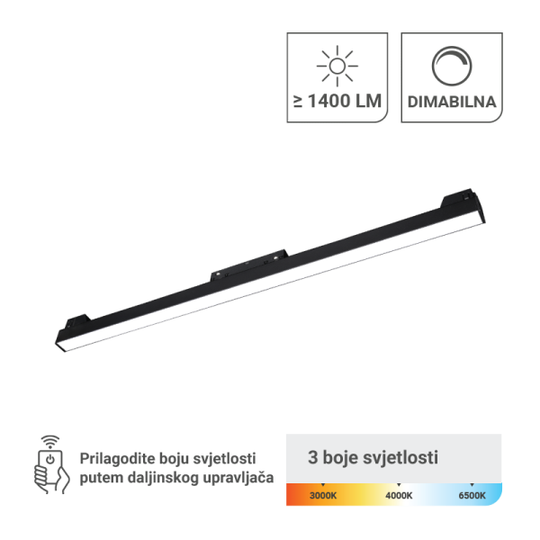 LED MAGNETNA SVJETILJKA 20W 3CCT IP20 OSRAM LED CRNA BOJA GREEN TECH
