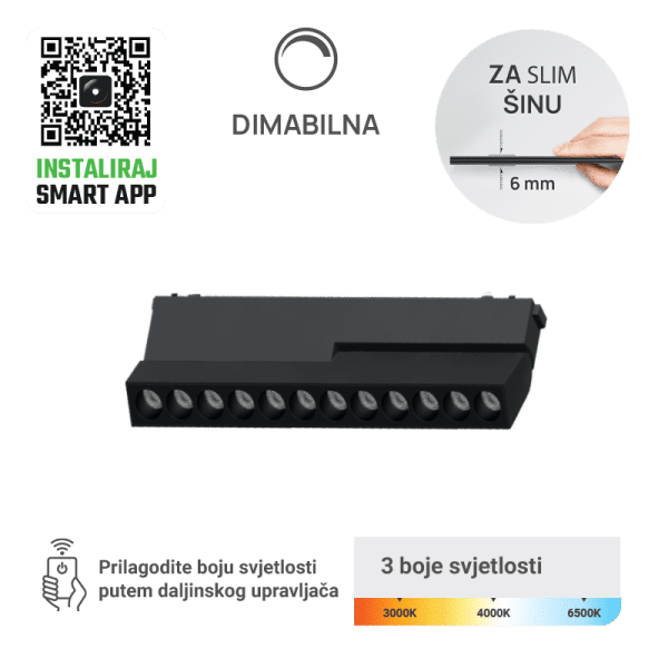LED MAGNETNA SVJETILJKA GREEN TECH 12W 3CCT LED OSRAM DIMABILNA ZA SLIM ŠINU