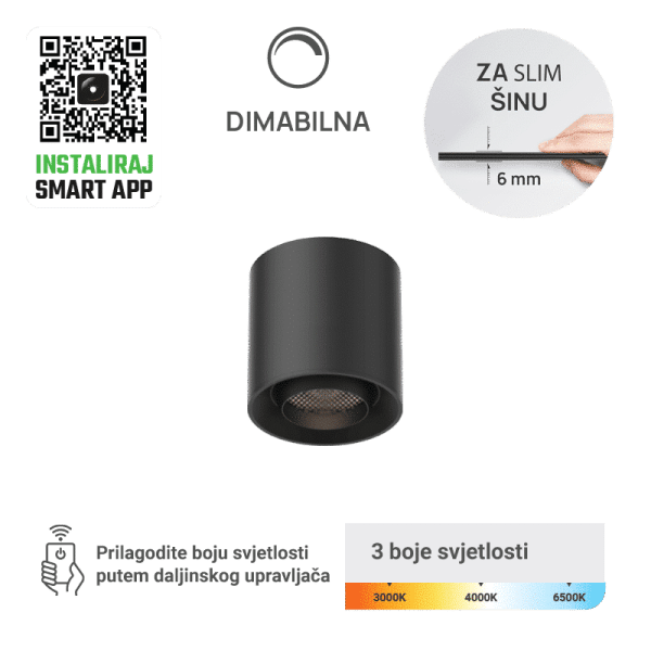 LED magnetna svjetiljka Green Tech, 6W, 3CCT, LED Osram, Dimabilna za slim šinu
