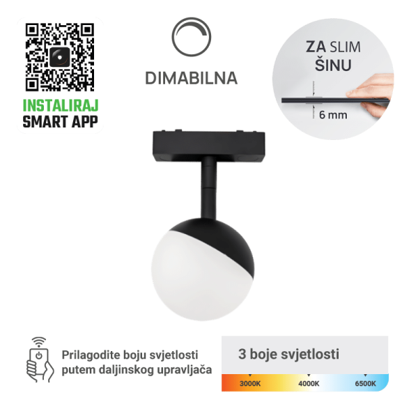 LED MAGNETNA SVJETILJKA GREEN TECH 6W 3CCT LED OSRAM DIMABILNA ZA SLIM ŠINU