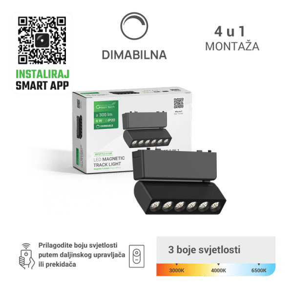 LED MAGNETNA SVJETILJKA GREEN TECH MYSTYLE 6W 3CCT DIM SMART LAMP APP