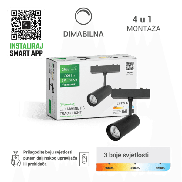LED magnetna svjetiljka Green Tech “MYSTYLE” 6W, 3CCT, Dim.