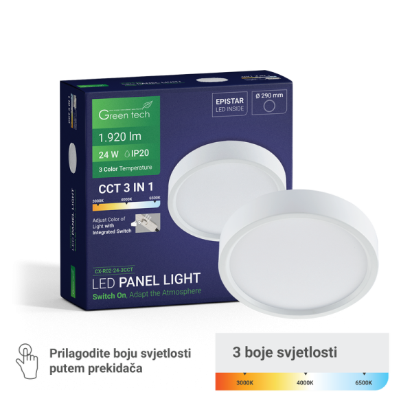 LED panel nadgradni okrugli Green Tech 24W 3CCT