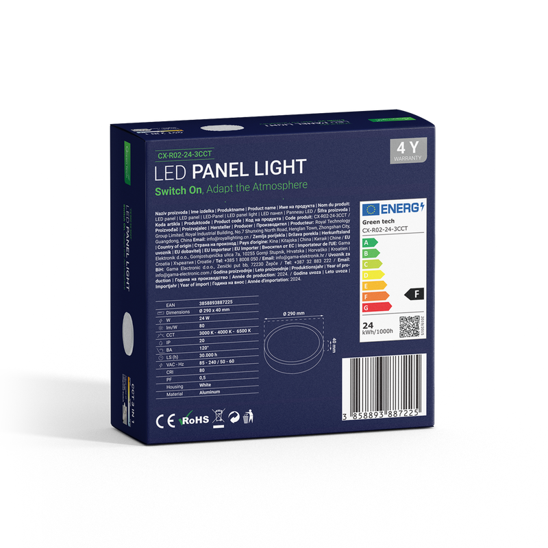 | Boja svjetlosti | 3CCT (3000K 4000K 6500K) |
