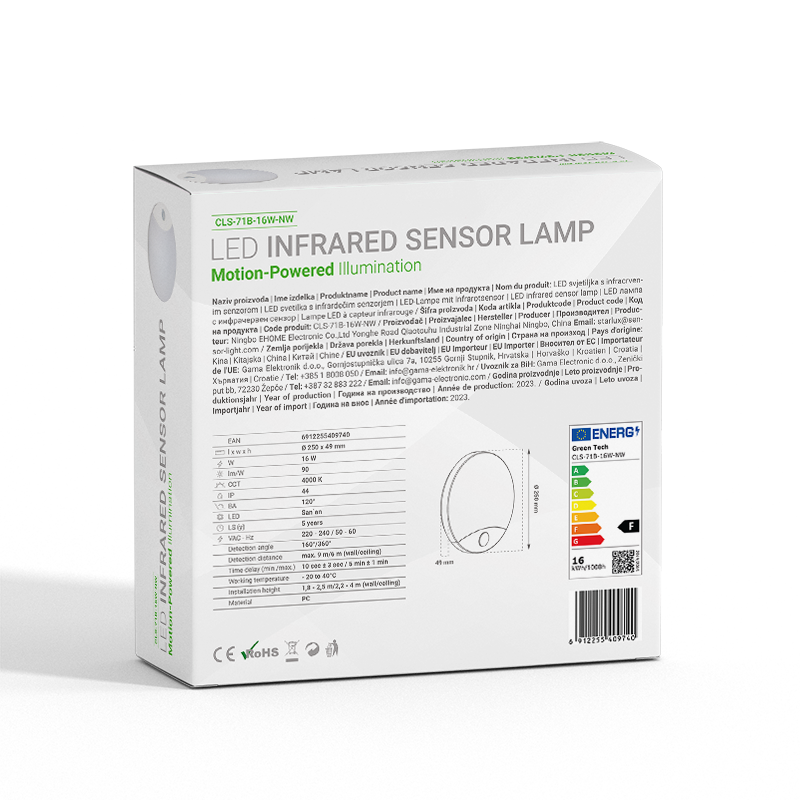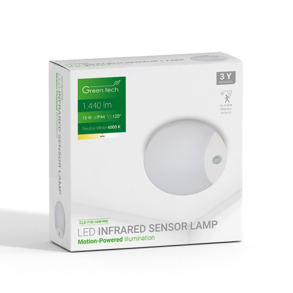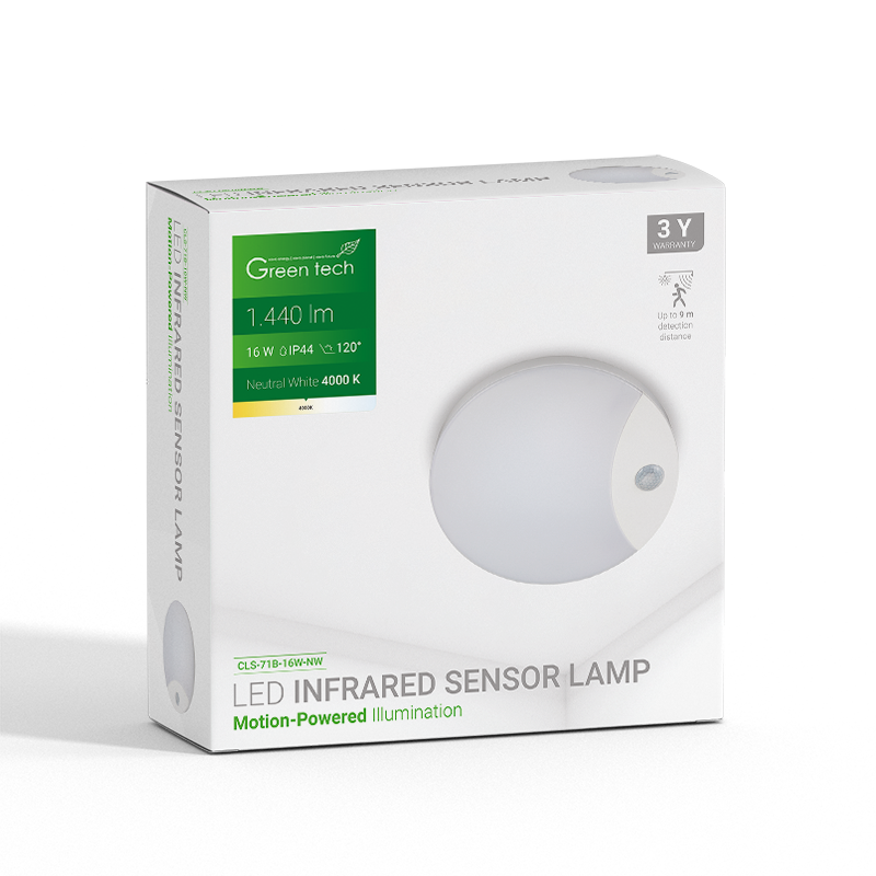 LED plafonjera sa senzorom Green Tech 16W, 4000K, promjer 25cm – CLS-71B-16W-NW