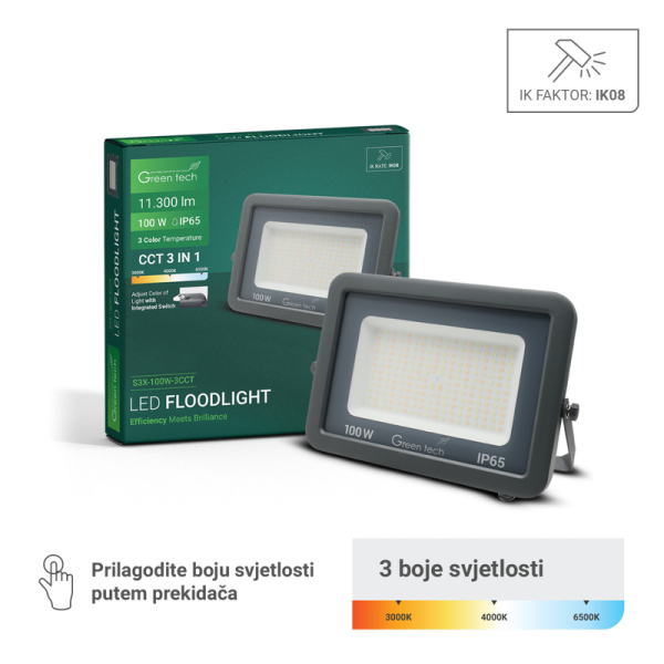 LED reflektor 100W 3CCT Green tech IK08
