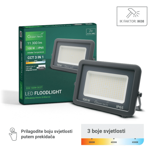 LED reflektor 100W 3CCT Green tech IK08