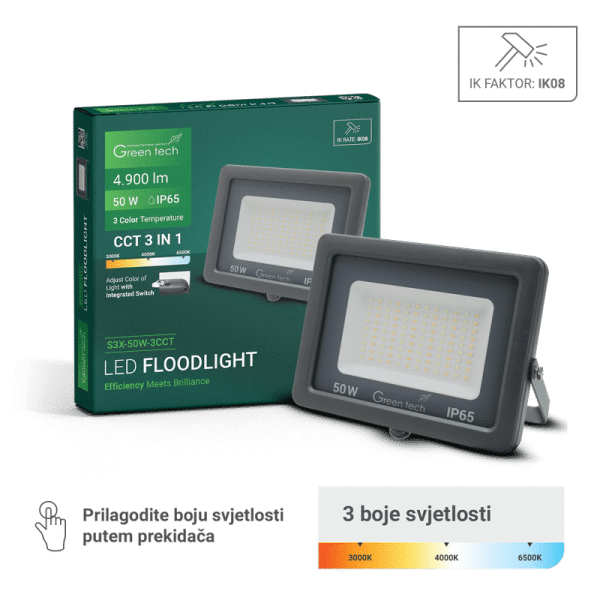 LED reflektor 50W 3CCT Green tech IK08