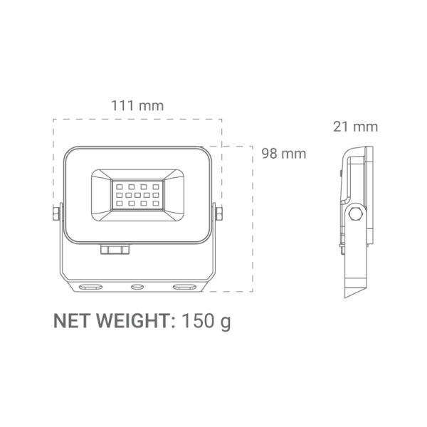 Suvremeni dizajn i vrhunska izrada: Izrađen od kvalitetnog aluminija i kaljenog stakla, ovaj bijeli reflektor pruža elegantan izgled i izdržljivost. Njegove kompaktne dimenzije (111 x 98 x 21 mm) idealne su za raznovrsne primjene.