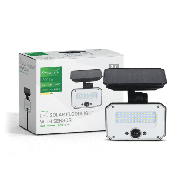 LED solarni reflektor Green Tech 5W, 4000K, IP65, 500 lm – VENUS-L