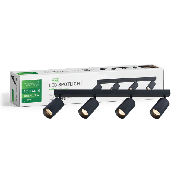 LED spot lampa Green Tech 4 x GU10 crna