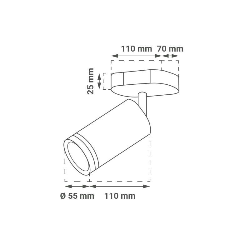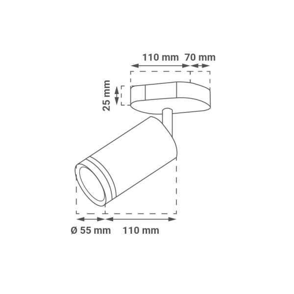 Dimenzije nosača svjetiljke: 110 x 70 x 25 mm