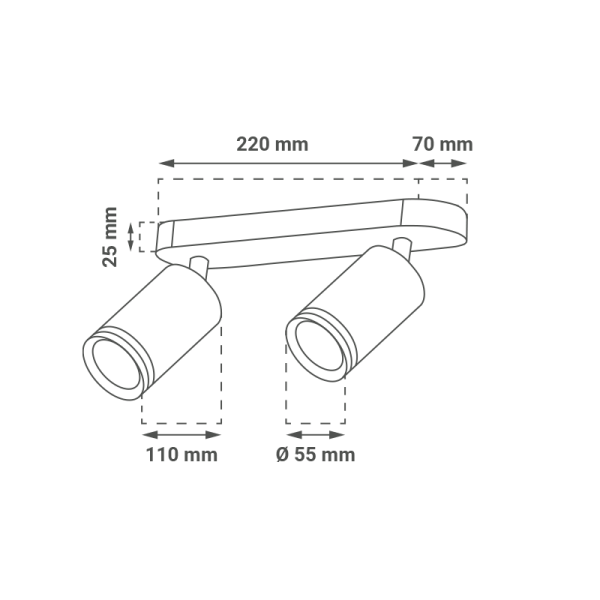 Dimenzije nosača svjetiljke: 220 x 70 x 25 mm