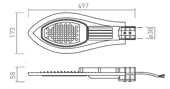 Ulična svjetiljka malih dimenzija, ali jakog svijetla. Snagom od 30w i svjetlosnim tokom od 3000lm lampa ispunit će potrebe osvjetljena manjih površina do 50m2.