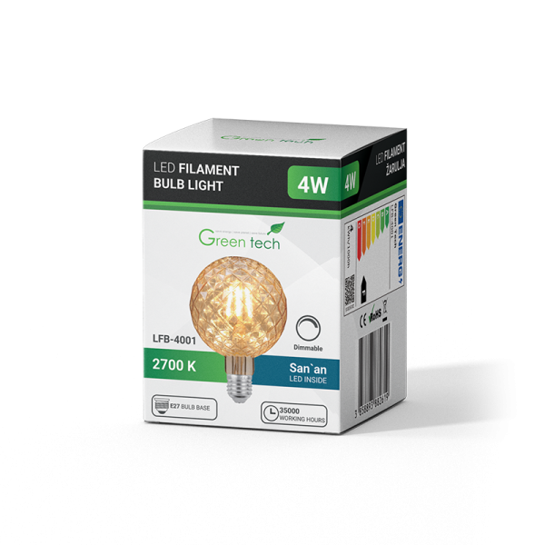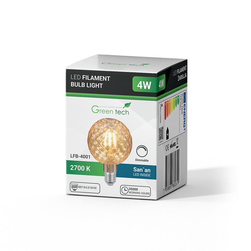 LED žarulja Amber dimabilna Green Tech 4W 2700K E27 antik