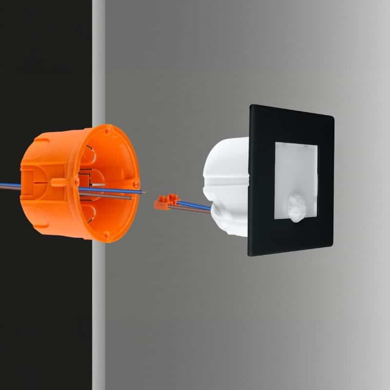 LED zidna svjetiljka sa senzorom za stepenice DPM 1,2W 4000K crna kvadratna