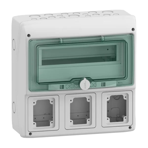 Mini gradilišni ormarić za struju Schneider Kaedra sa 12 modul mjesta za osigurače i 3 otvora za utičnice