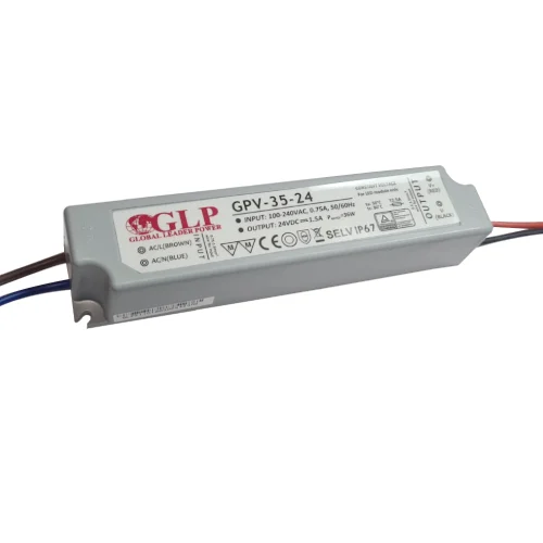 Napajanje za led traku transformira napon od 200-240V AC u 24V DC. Maksimalna izlazna snaga je 35W. Napajanje je izrađeno sa visokim stupnjem zaštite IP67. Što govori da je otporan na vodu i vanjske utjecaje.