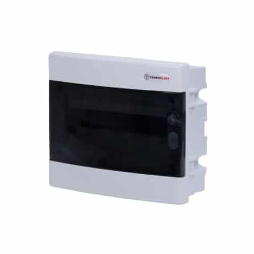 Podžbukni razvodni ormar za 12 mjesta izrađen od visoko kvalitetnih ABS materijala. Ormar je bijele boje dok su prednja vrata zatamljeno prozirna. Razvodni ormar postavlja se za razvod električne instalacije u kućanstvima ali i manjim industrijskim pogonima.