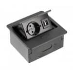 Preklopna utičnica crne boje s jednom schuko utičnicom i dva USB konektora. Uz utičnicu dolazi i kabel dužine 1,5m za jednostavniju montažu.
