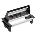 Ugradbena utičnica s mogućnošću poklapanja dok su kabeli ukopčani u nju. Konzola je opremljena s 3 schuko utičnice te 2 USB priključka, izrađena je od visokokvalitetnih materijala u sivoj boji.