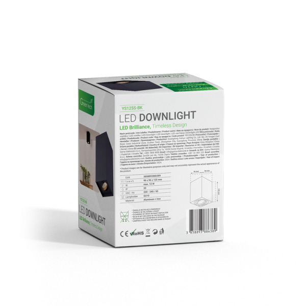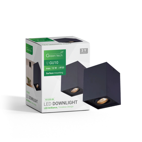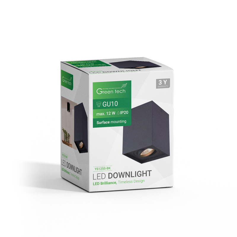 Nadgradna svjetiljka Green Tech, crna boja, grlo GU10 – YS125S-BK